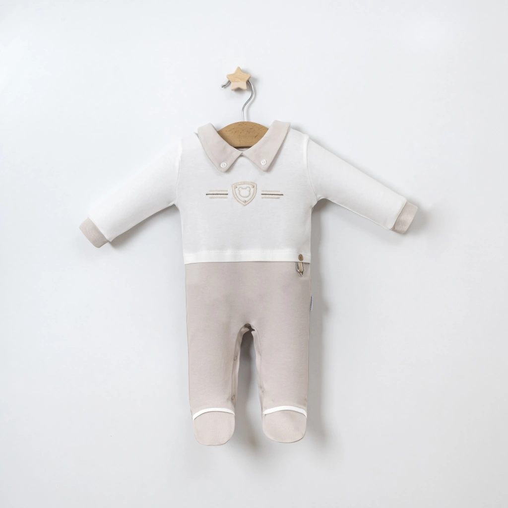 Lamato Baby markasının özel tasarımı olan Arma Nakışlı Gömlek Yakalı Bebek Erkek Tulum, hem şık hem de konforlu bir seçenektir.