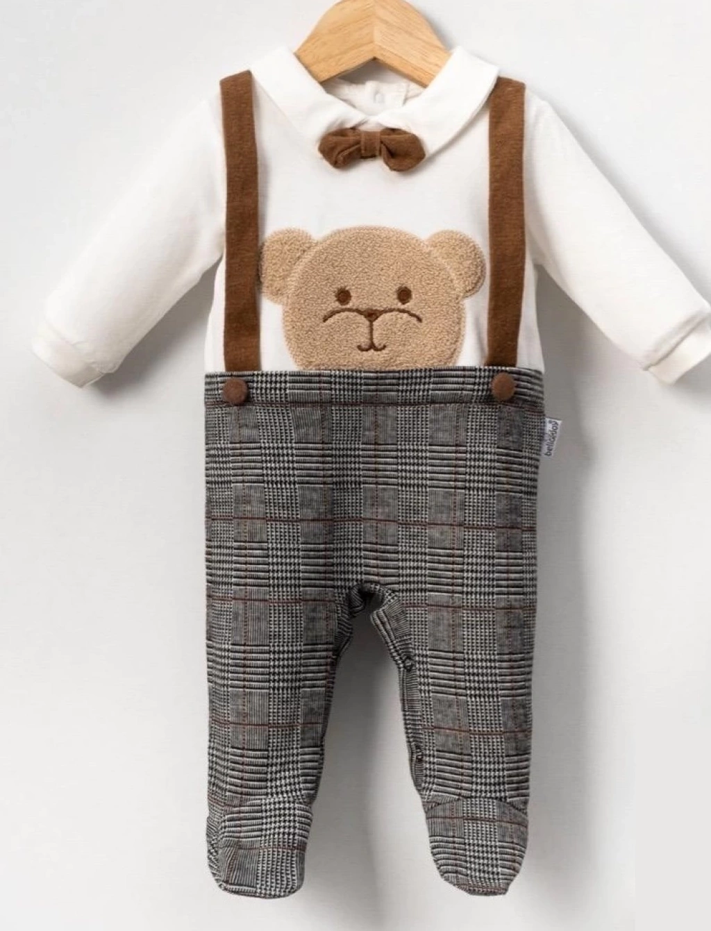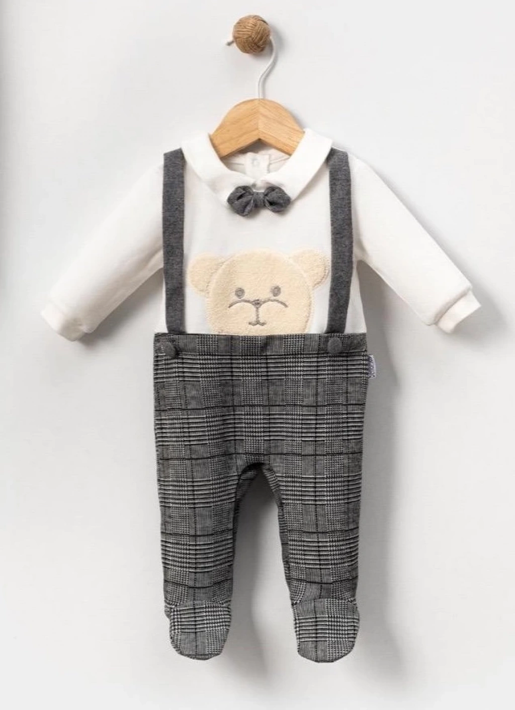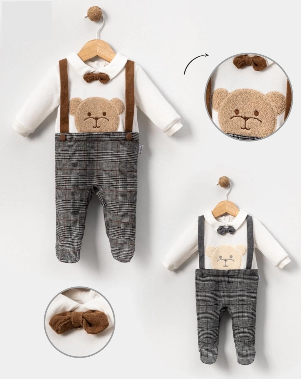 Ayı kafası süzüne nakışlı detaylar tulumun sevimliliğini arttırır.