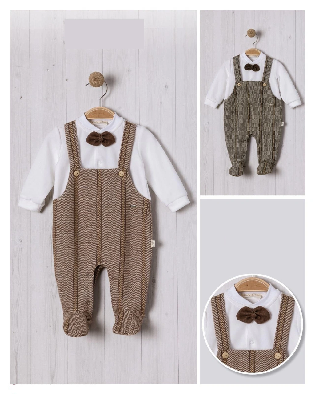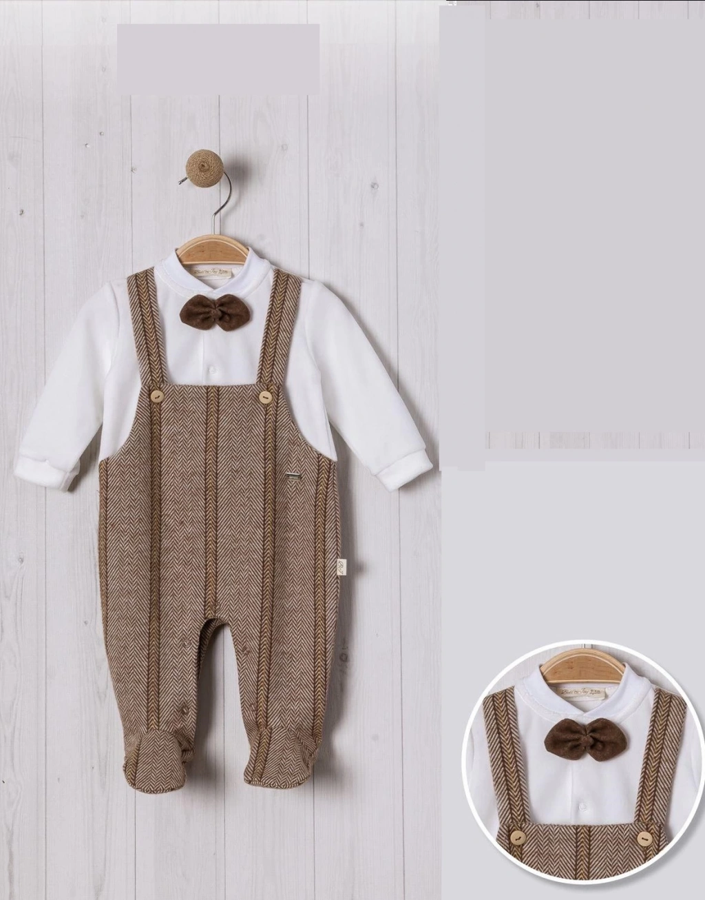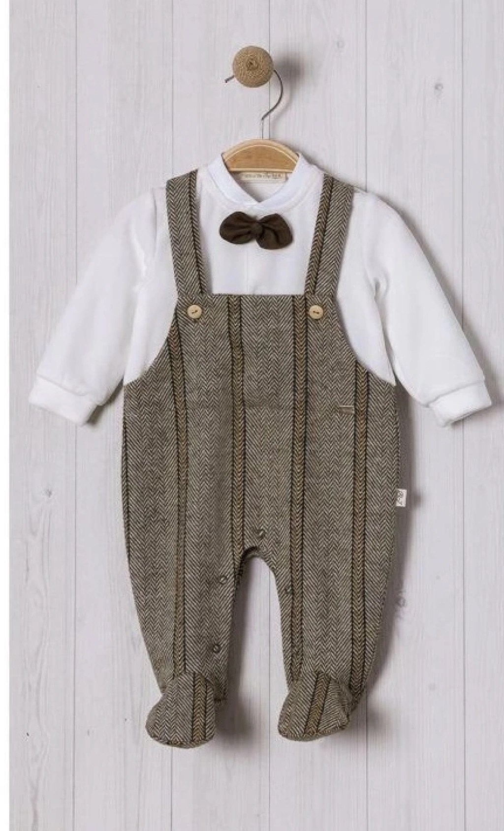 Balıksırtı Salopet Papyonlu Bebe Erkek Tulum ile bebeğinizin gardırobuna şıklık katmayı ihmal etmeyin!