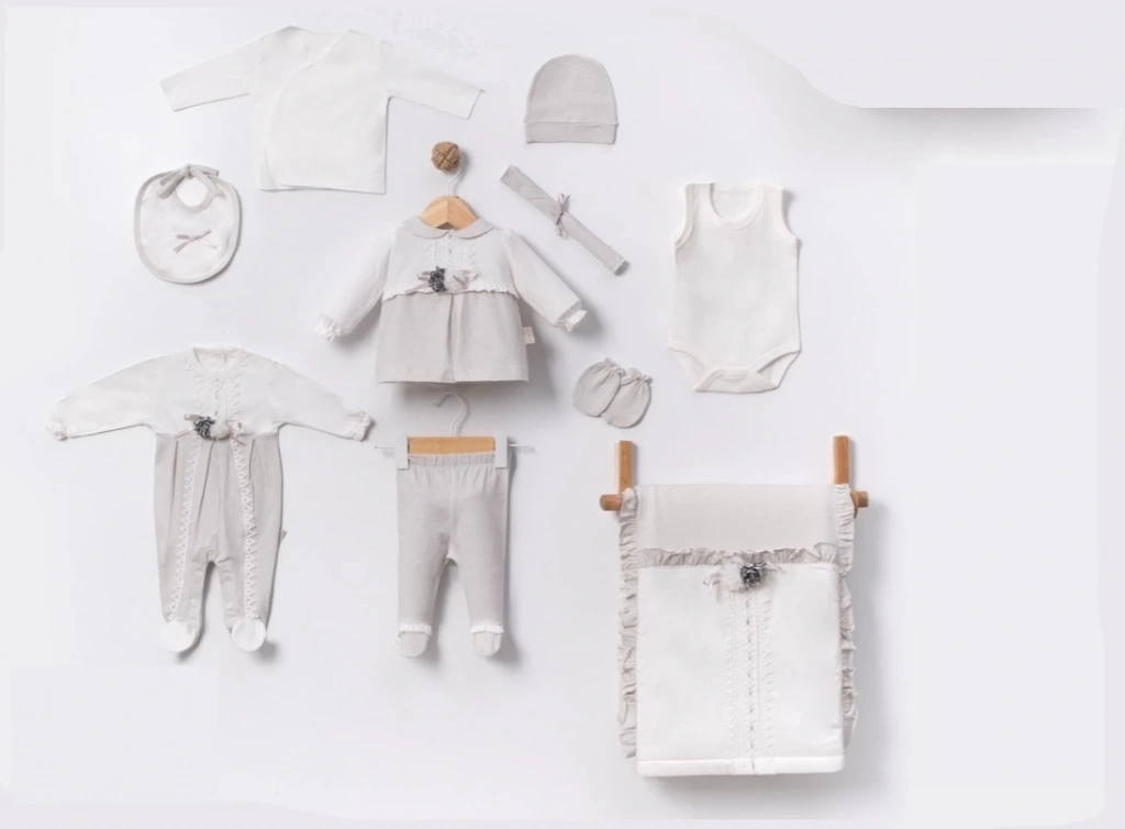 Hastane çıkışı için özel olarak tasarlanmış 10 parçalık bir set içerir, bebeğinizin ilk günlerinde ihtiyacı olan her şeyi sunar.