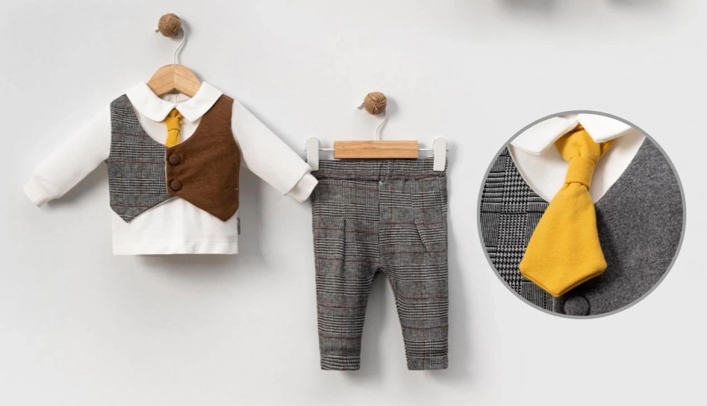 Pantolonu, yeleği ve kravatıyla tam bir kombin sunan bu takım, özel günlerde veya günlük kullanımda rahatlıkla tercih edilebilir.