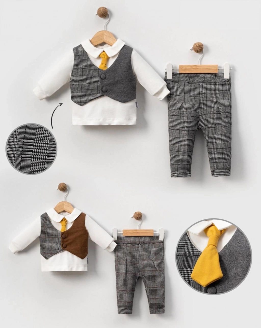 Lamato Baby markasının özenle tasarladığı Çift Renk Yelekli Kravatlı Bebe 2'li Erkek Takımı ile bebeğinizin tarzını tamamlayın.