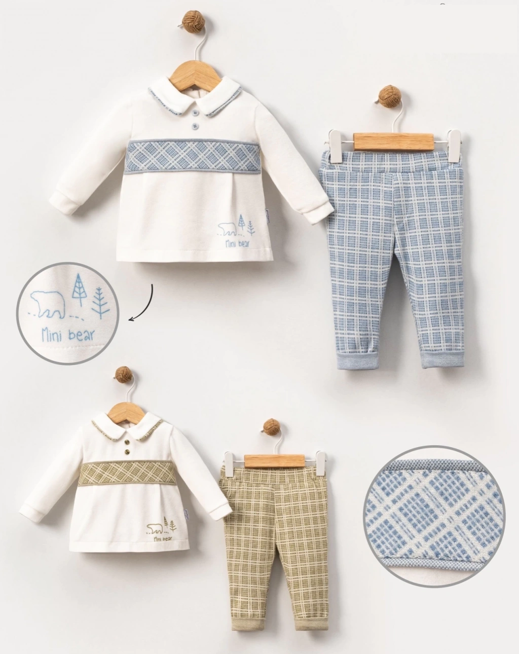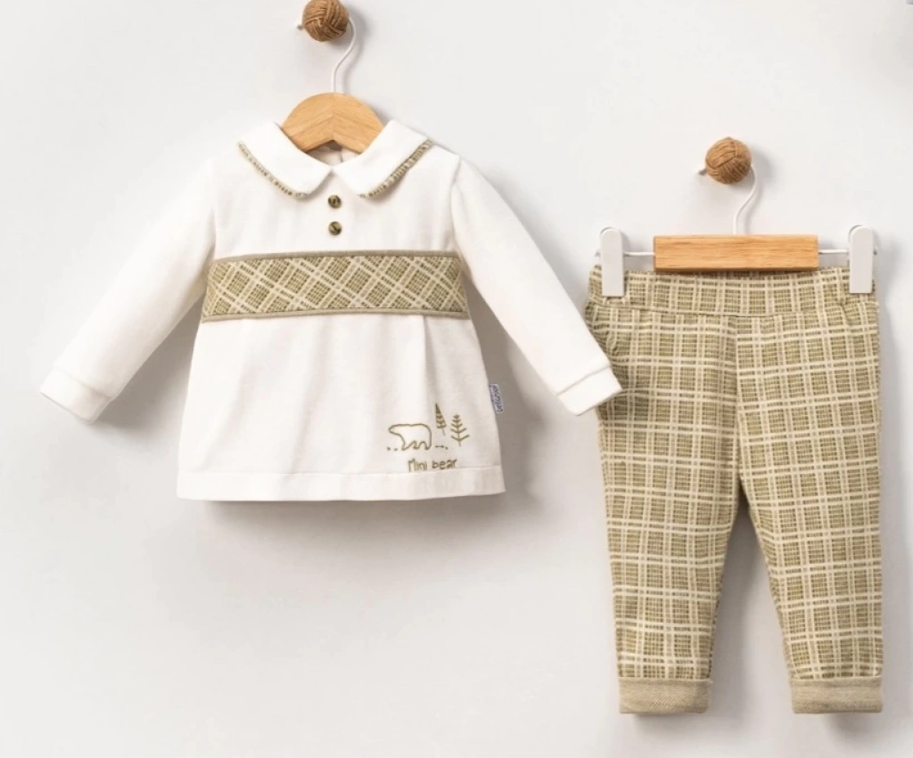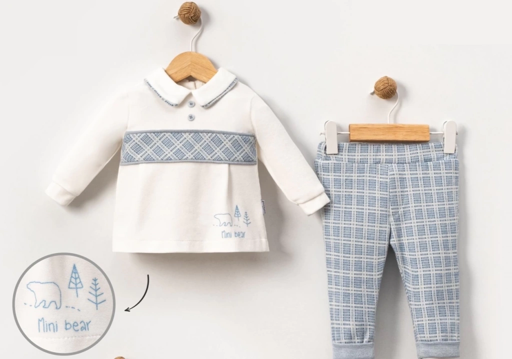 Eşsiz ayıcıklı nakış detayları, takımı daha şirin hale getirir.