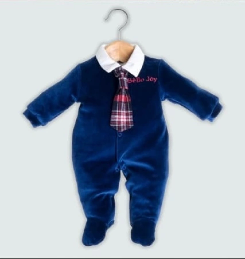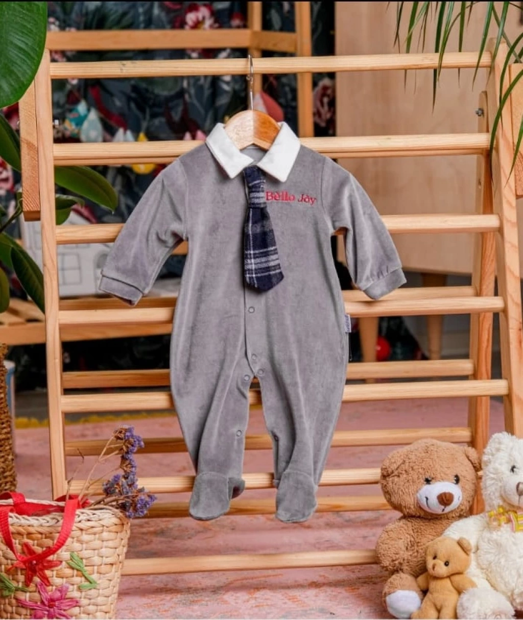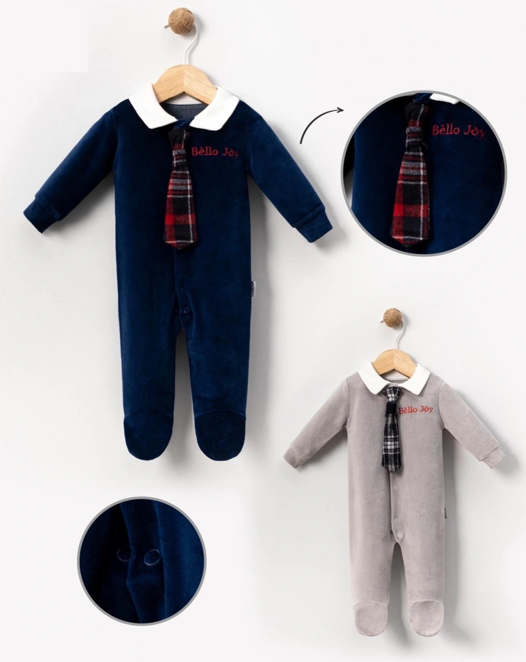 Lamato Baby marka Ekose Kravatlı Kadife Bebe Erkek Tulum, bebeğinizin şıklığını ön plana çıkaracak bir seçenektir.