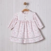 Astarlı ve dantel detaylı olan bu elbise, kol uçlarında bulunan büzgülü detaylar ile hareket katmaktadır. %100 kaliteli pamuklu kumaşı sayesinde bebeklerin cildine en yumuşak dokunuşu sağlamaktadır.