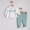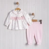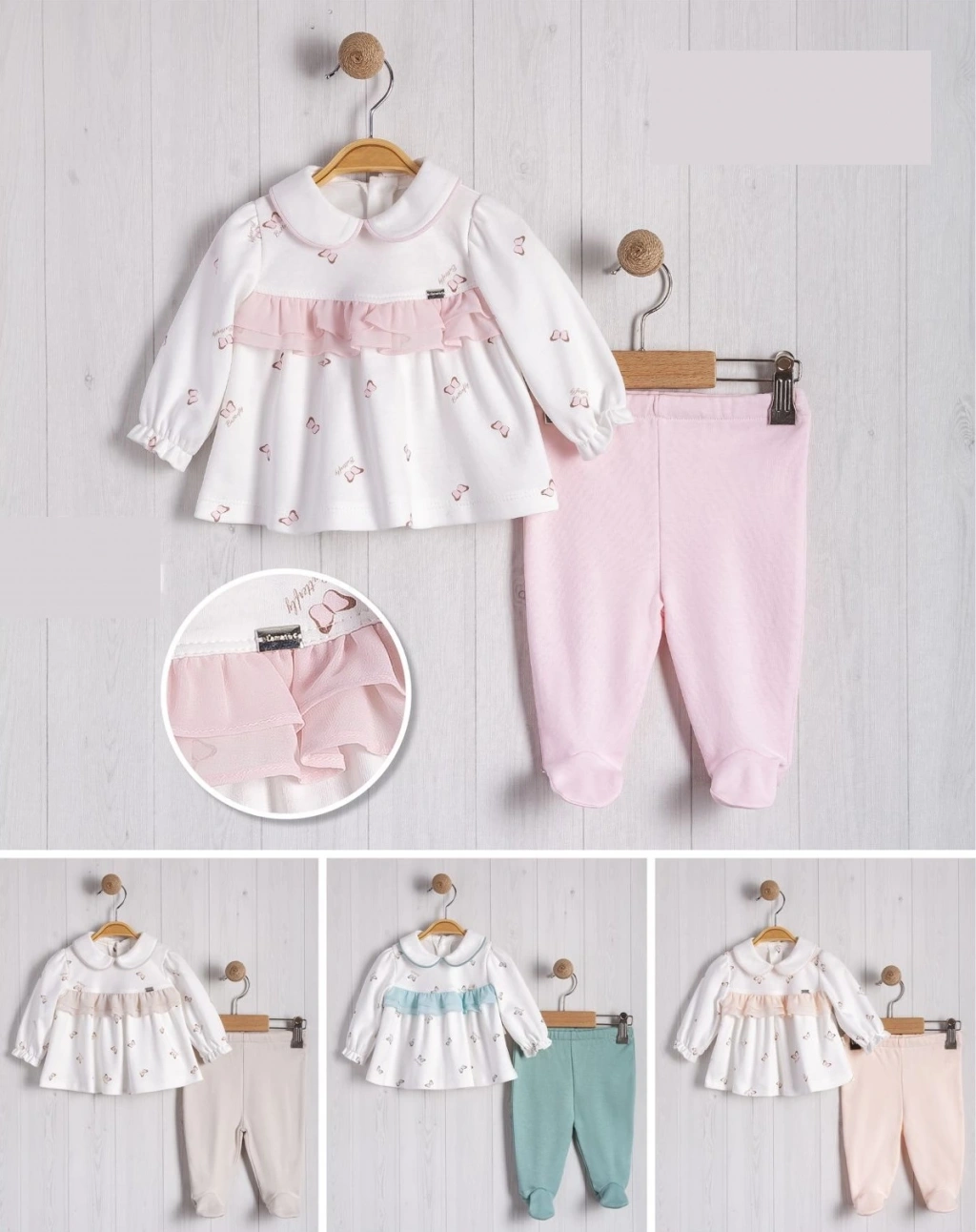 Lamato Baby markasının şirin ve şık bir tasarıma sahip olan Kelebek Baskılı Şifon Fırfırlı Bebe 2'li Kız Takımı, minik kızınızın gardırobuna renk katmaya hazır!