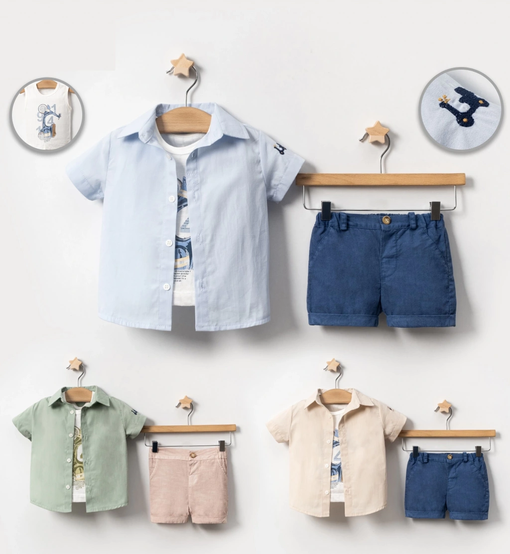 Minik oğlunuz için şık ve rahat bir tercih: Lamato Baby MOTOR BASKILI GÖMLEKLİ BEBE ERKEK 3'LÜ TAKIM!