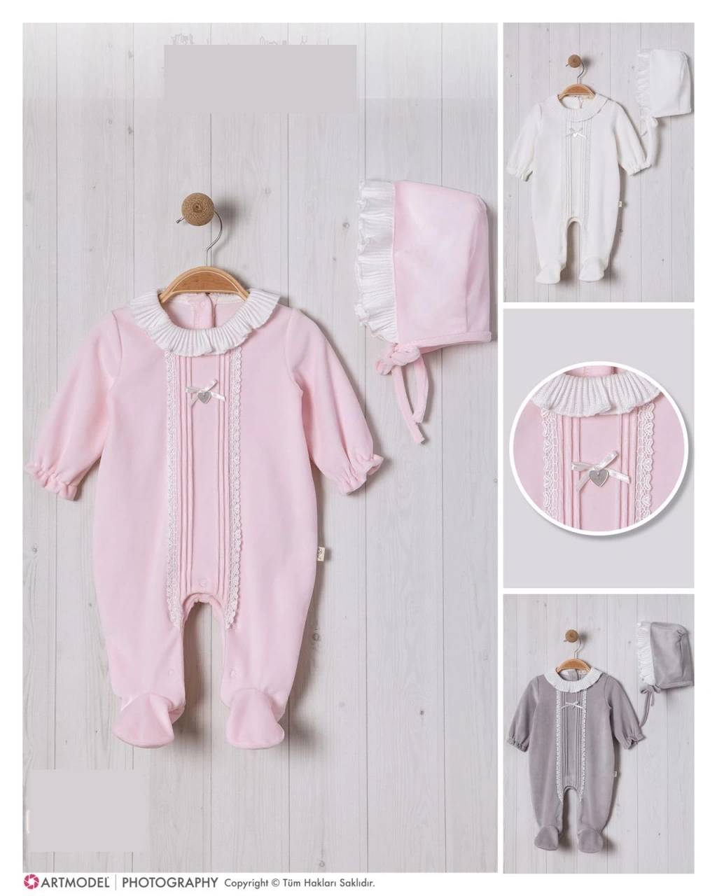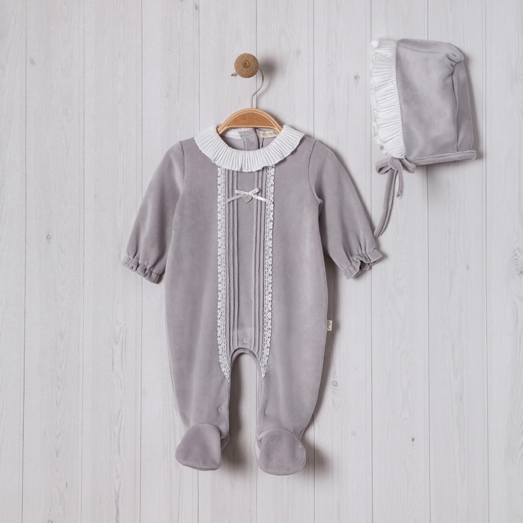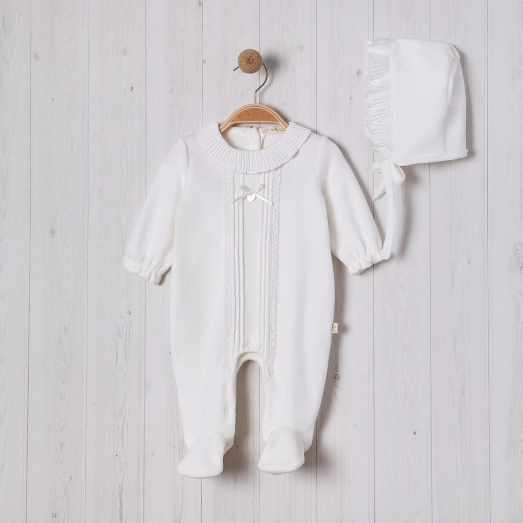 Lamato Baby markasının NERVÜRLÜ YAKASI FIRFIRLI ŞAPKALI BEBE KIZ TULUM'u, bebeğinizin kış aylarında şık ve konforlu olmasını sağlar.