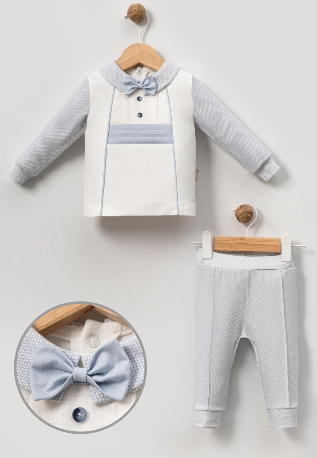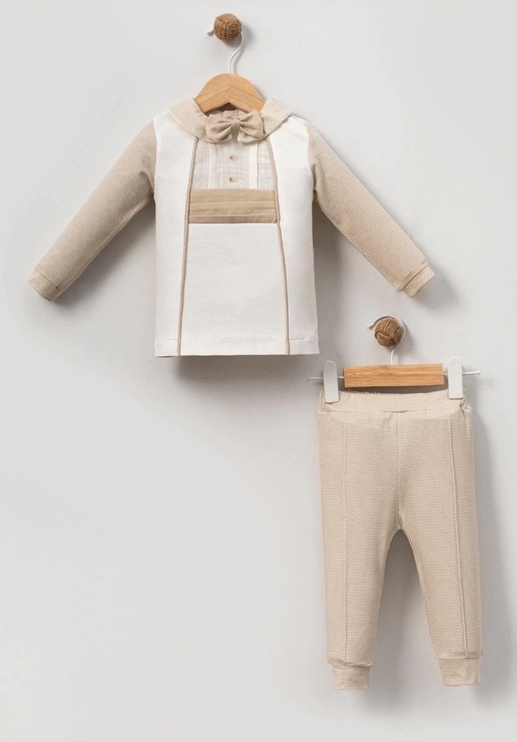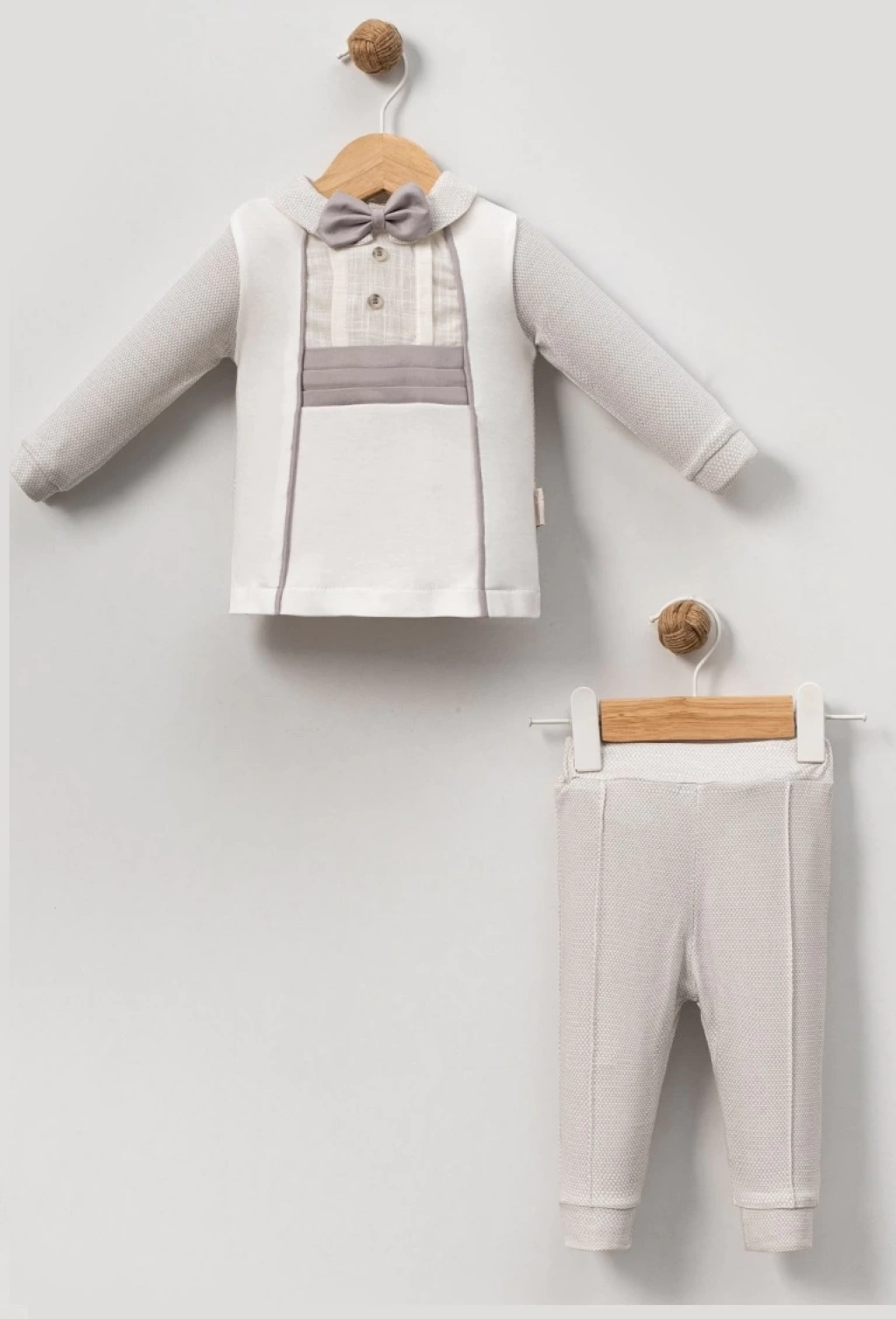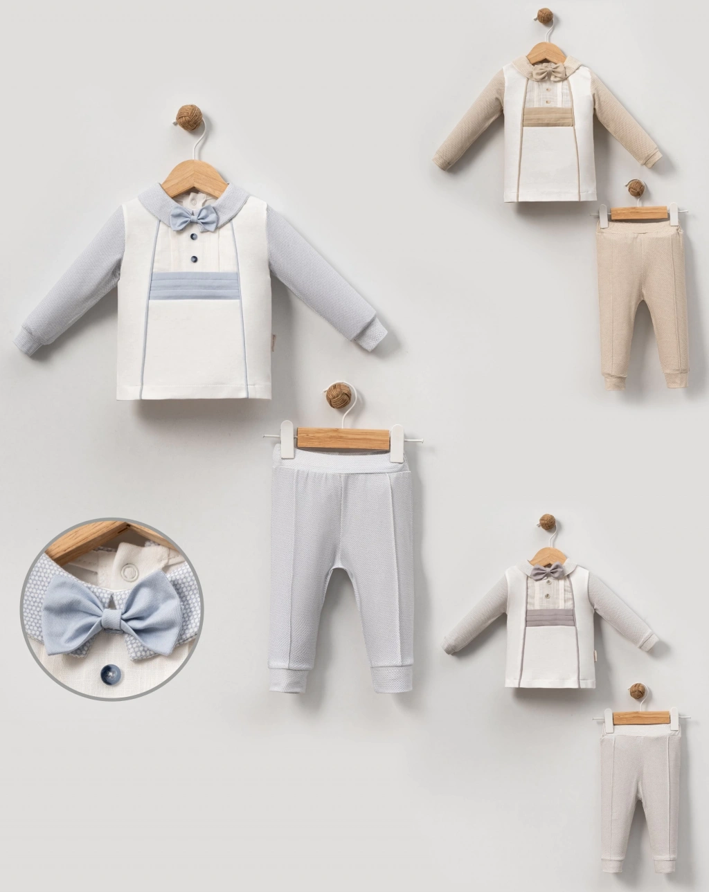 Lamato Baby markasının özel tasarımı olan Önü Düğme Aksesuarlı Bebe 2'li Erkek Takımı, bebeğiniz için konforlu ve şık bir seçenektir.