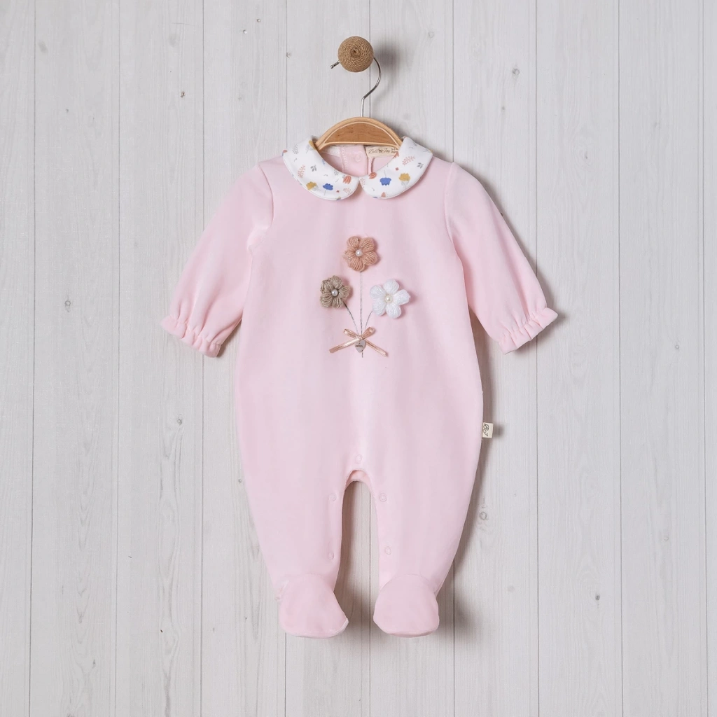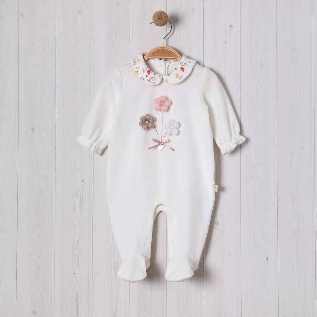 Yeni doğan bebek tulumları arasında öne çıkan Lamato Baby marka örme çiçek aksesuarlı kız bebek tulumu, bebeğinizin hem şık hem de rahat olmasını sağlar.