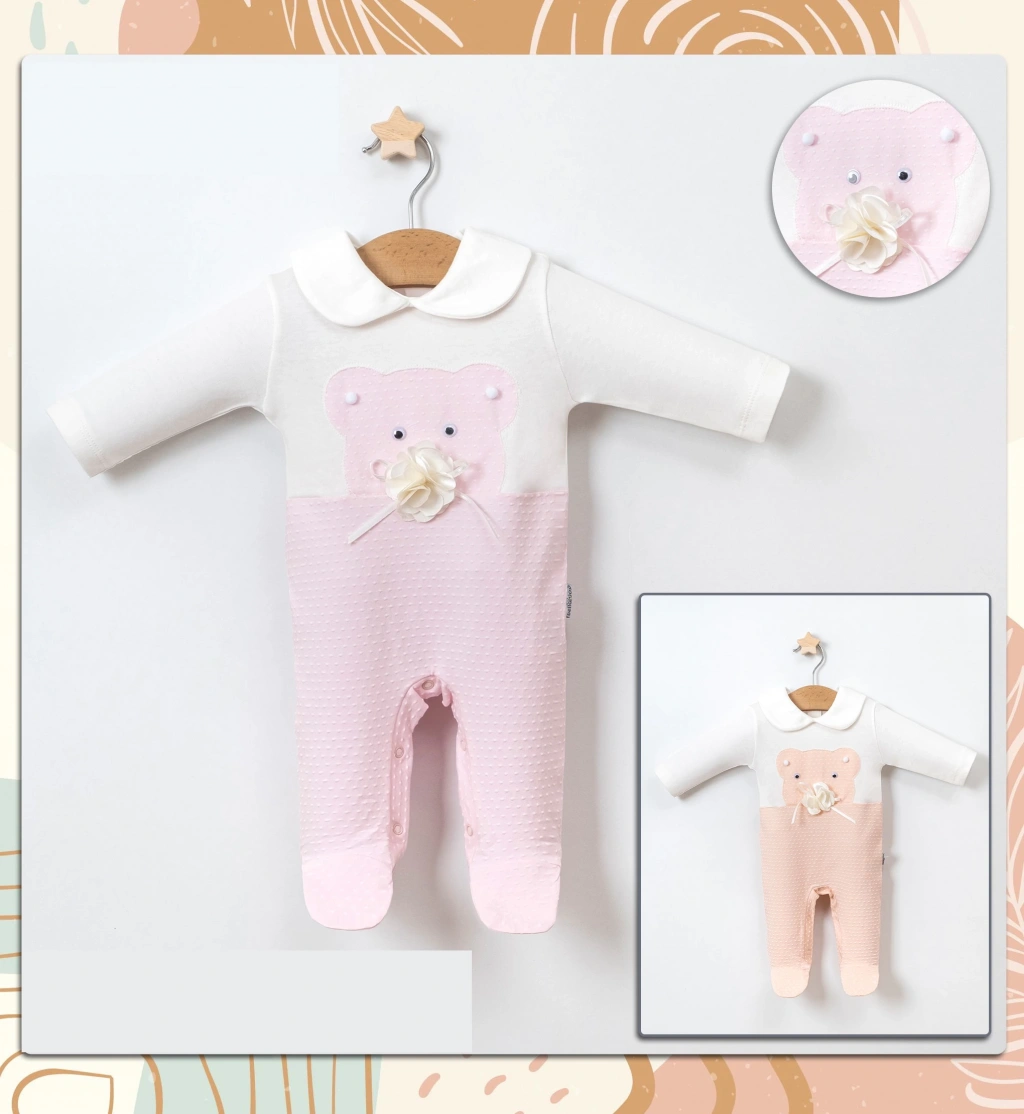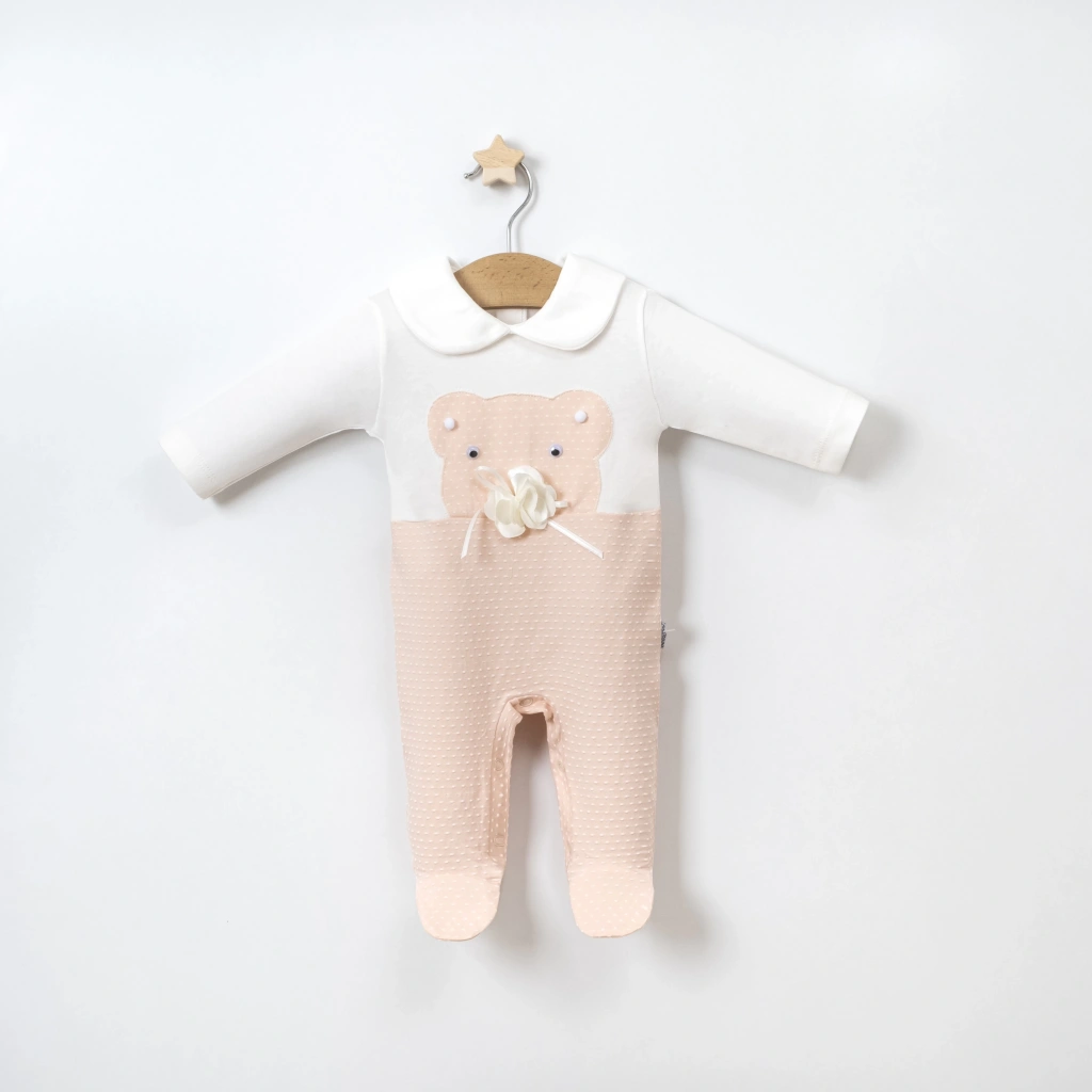 Lamato Baby'nin sevimli Puantiyeli Gül Ayıcık Aksesuarlı Bebe Yakalı Kız Tulumu, en özel anlarınızda bebeğinizin şıklığını tamamlar.