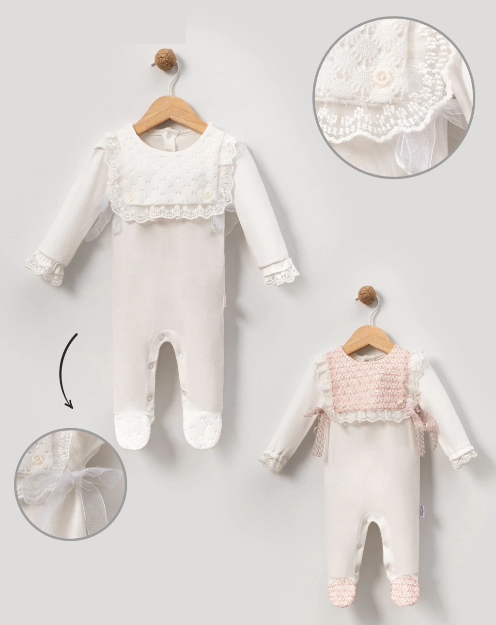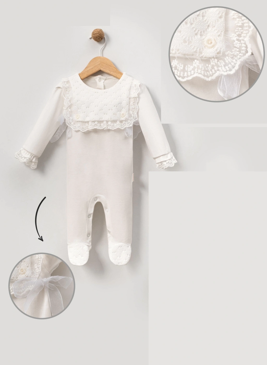 Özel dantel önlük detayıyla bebeğinizin zarif görünmesini sağlar.
