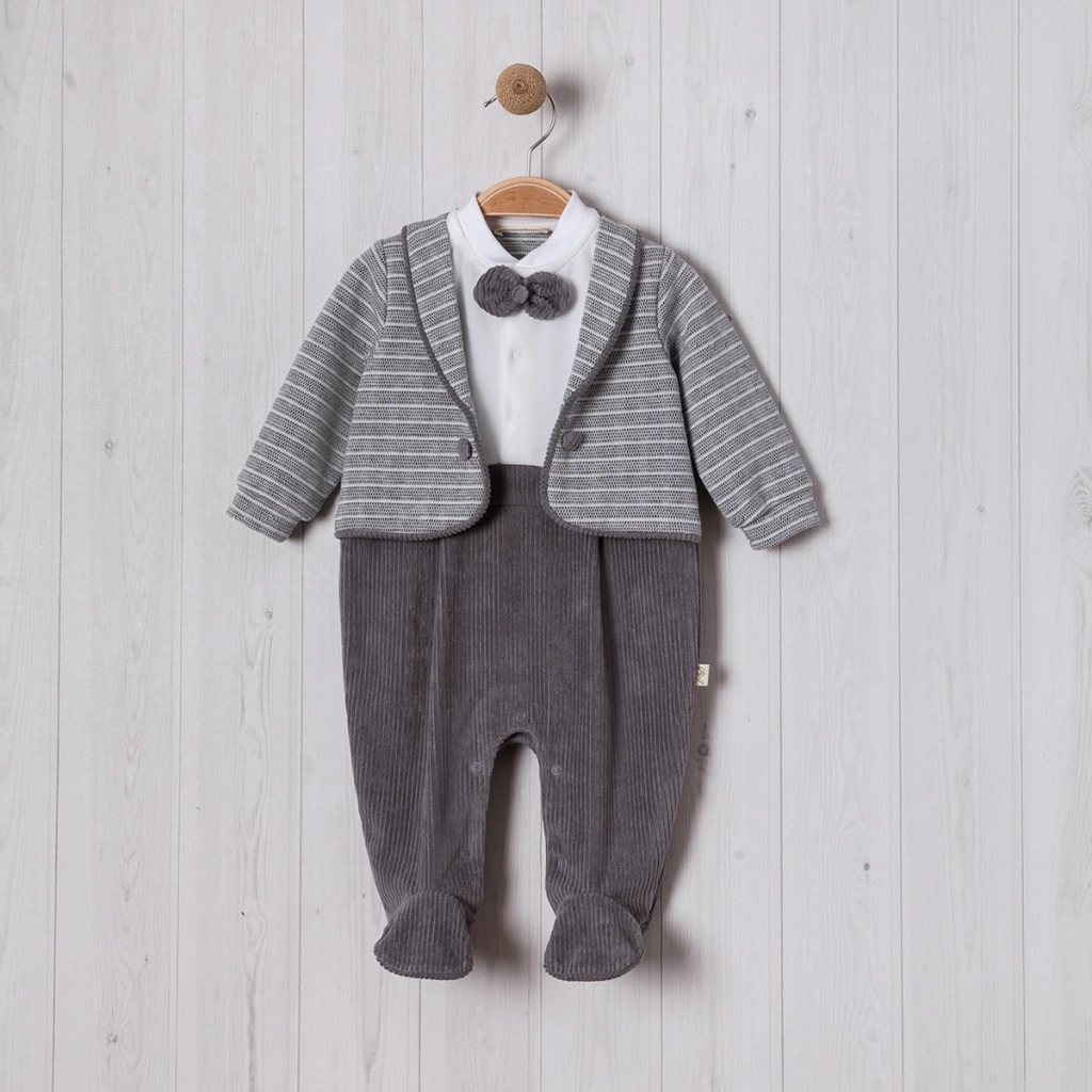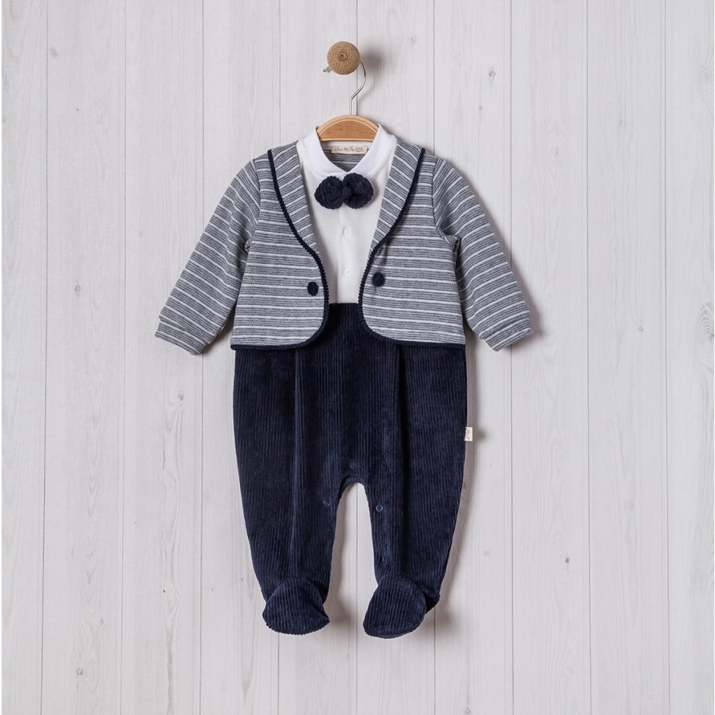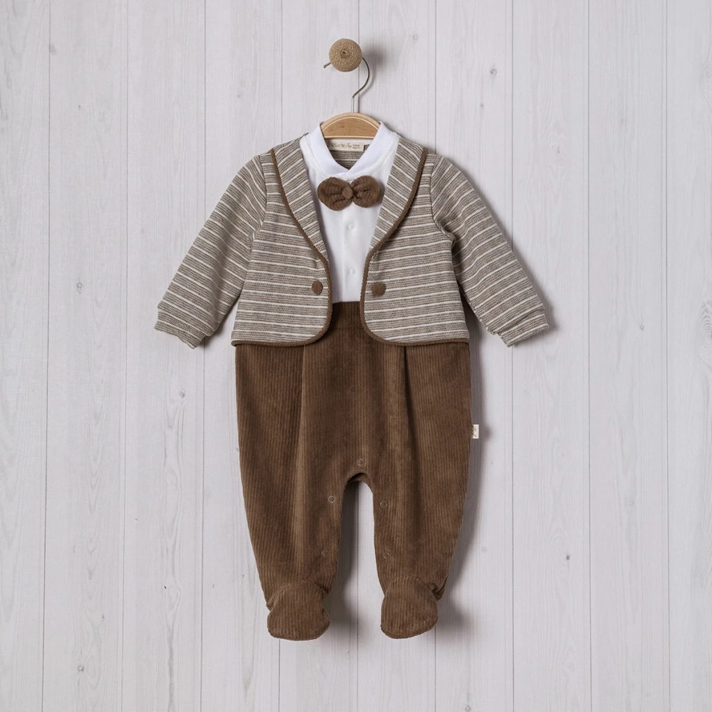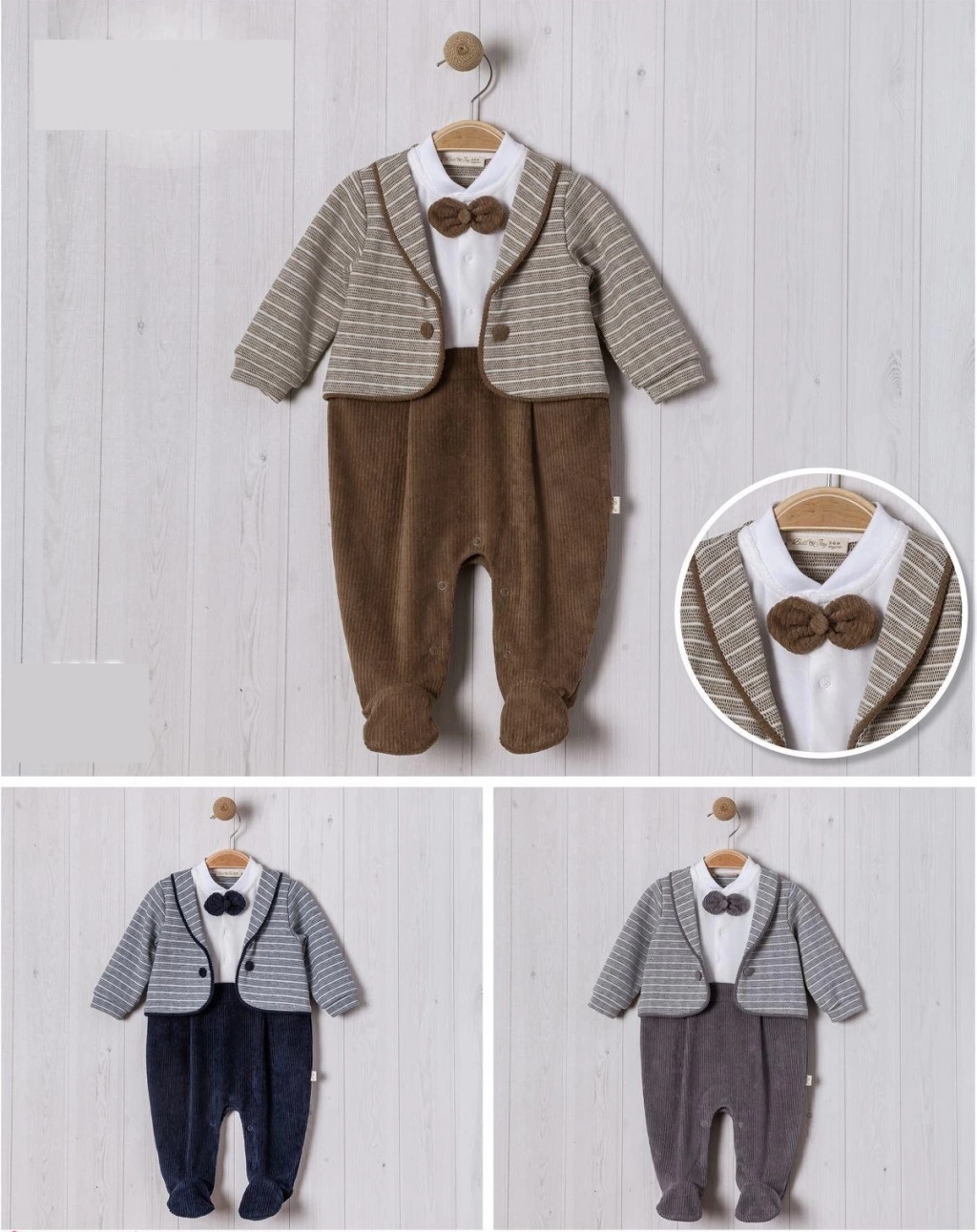 Yeni doğan bebekler için şıklık ve konforu bir arada sunan Lamato Baby marka sahte ceketli balıksırtı bebek erkek tulumu, bebeğinize sevimli bir görünüm kazandıracak. Papyonlu tasarımı ve patikli detaylarıyla dikkat çeken bu tulum, hem kaliteli hem de şık bir seçenektir.