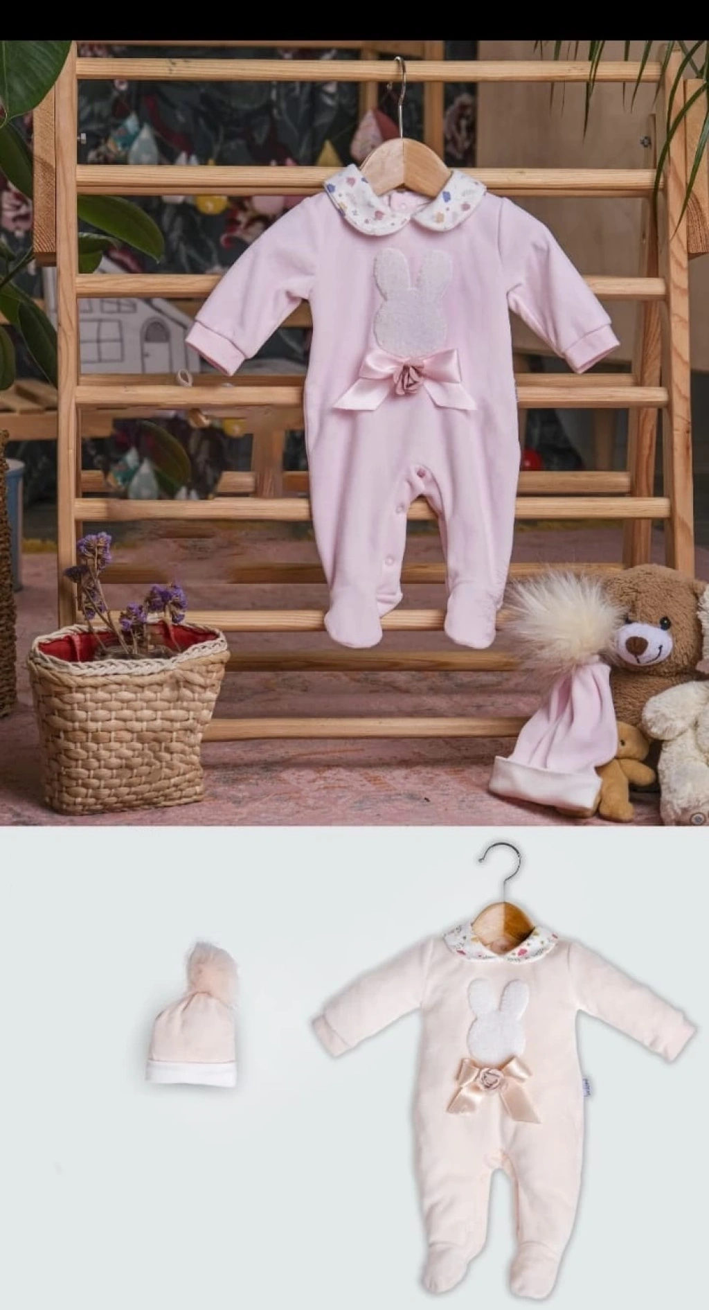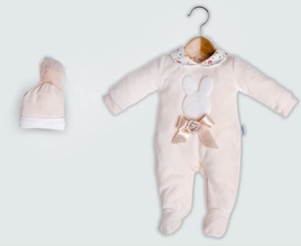 Lamato Baby markasının Süzine Tavşan Nakışlı Şapkalı Bebek Kız Tulum'u, küçük prenseslerin gardıroplarını şirinlikle tamamlıyor.