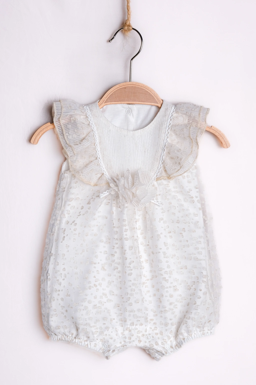 - Omuzları dantel süslemeli ve paçası fırfırlı tasarımıyla şirin bir görünüm kazandırır.