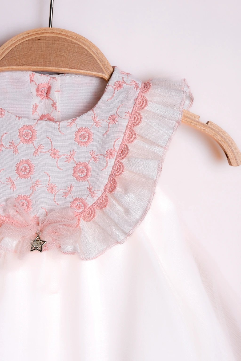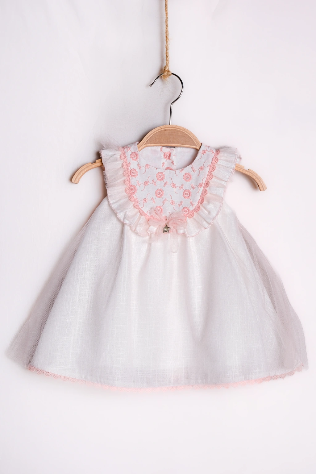 Bebekler için özel olarak tasarlanan Yazlık Sıfır Kol Çiçek Nakışlı Bebe Kız Elbise, minik prenseslerin şıklıklarını tamamlayacak harika bir seçenektir.