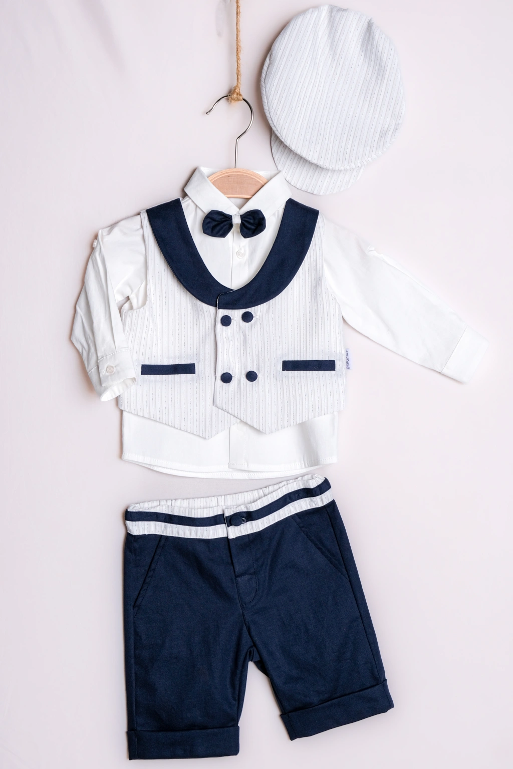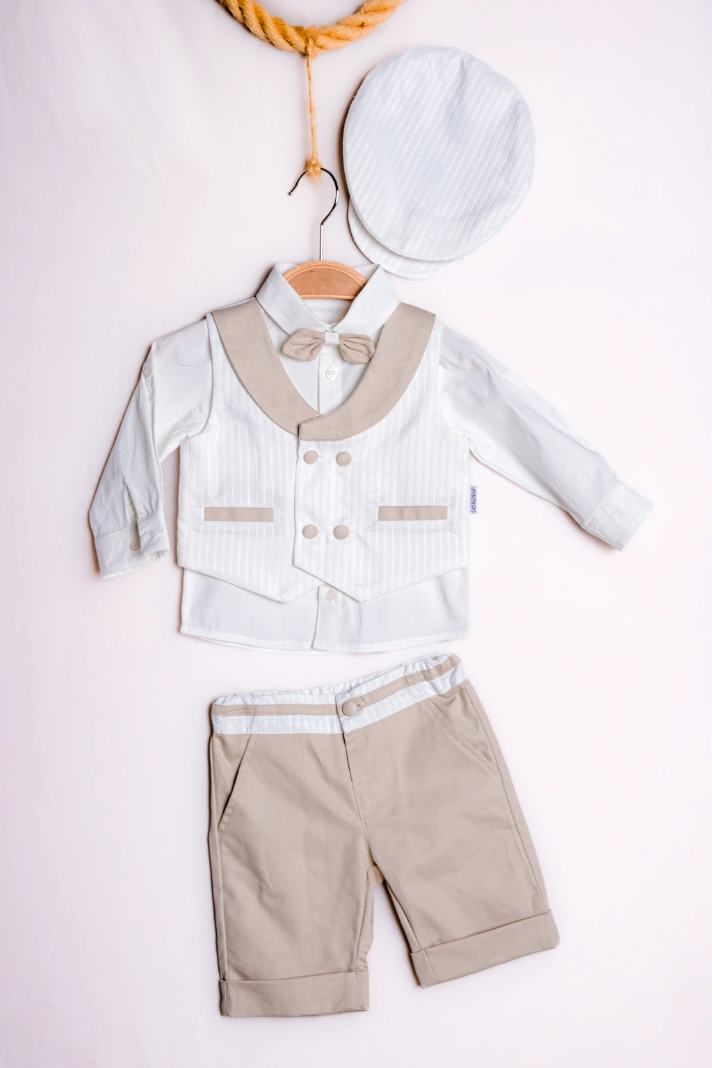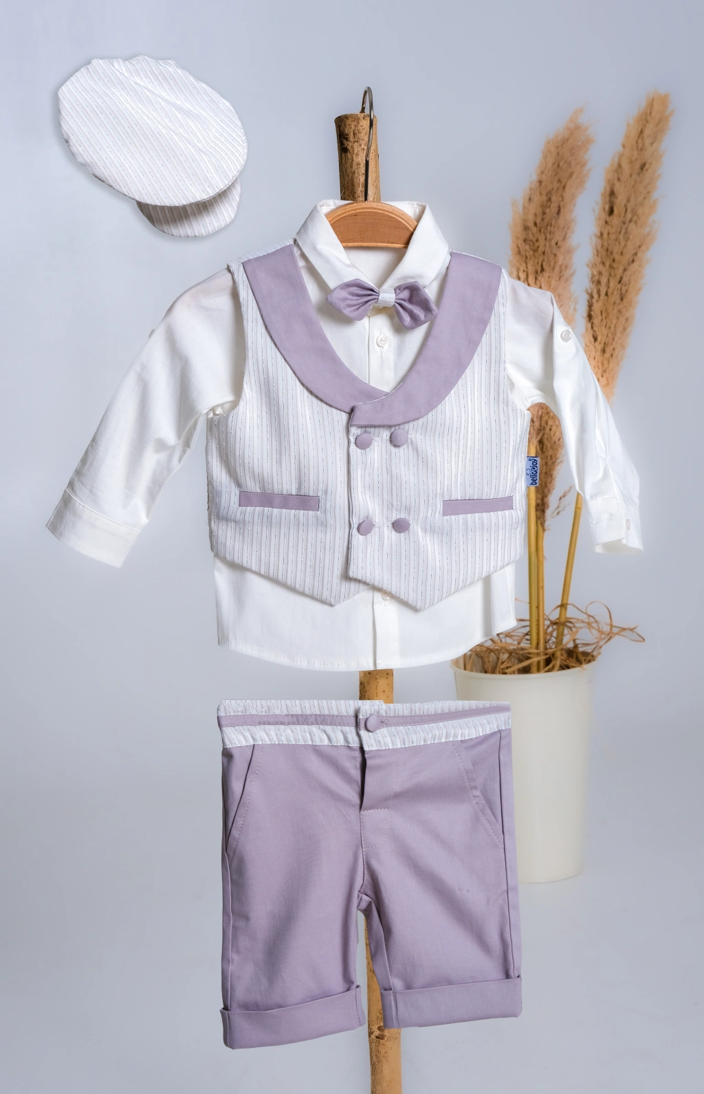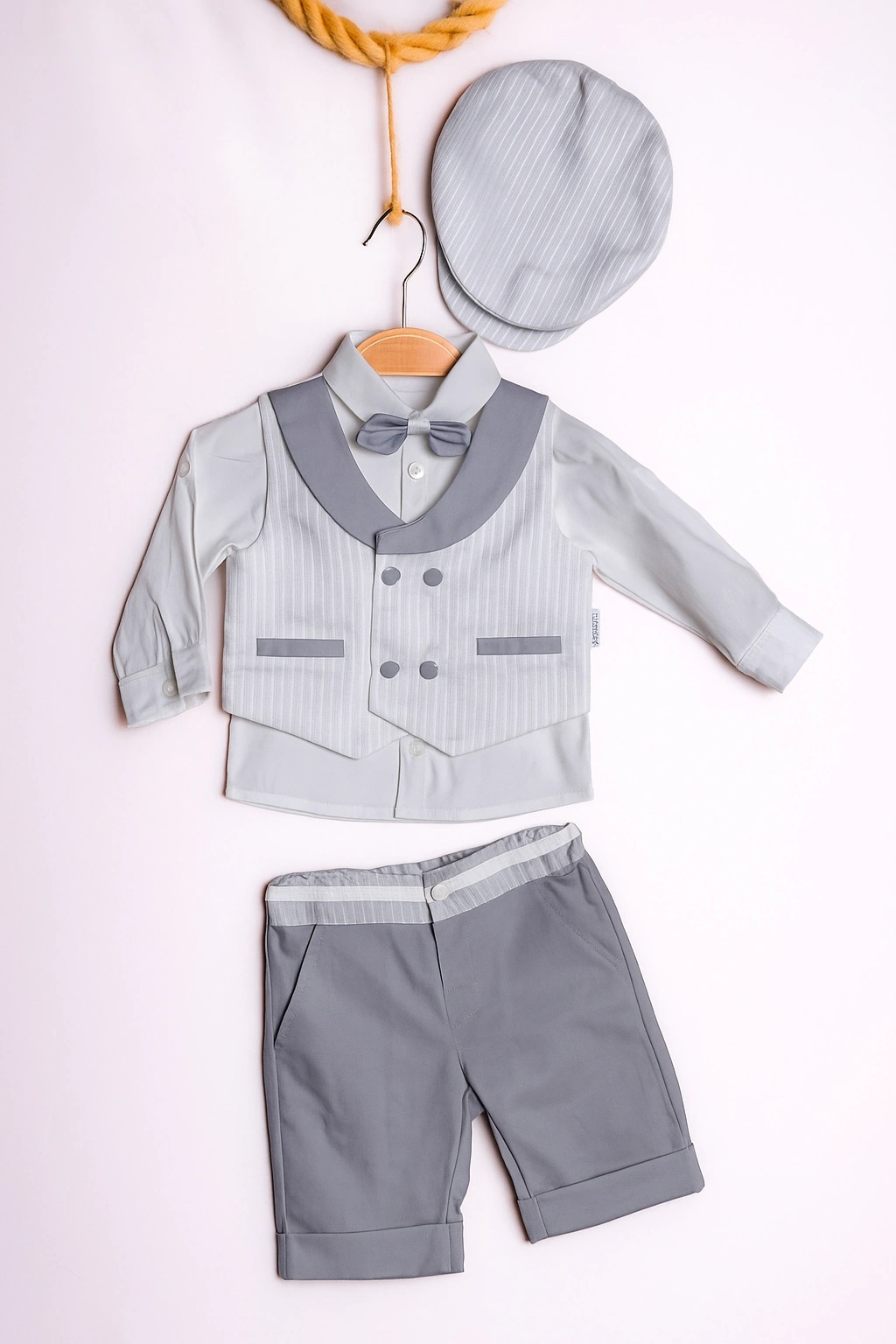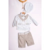 Lamato Baby markasının yaz aylarında bebeğinizin şıklığına şıklık katacak 3'lü bebek erkek takımıyla tanışın! Bu takım, yazlık yeleği, papyonu ve şapkasıyla bebeğinizin zarif görünmesini sağlayacak.